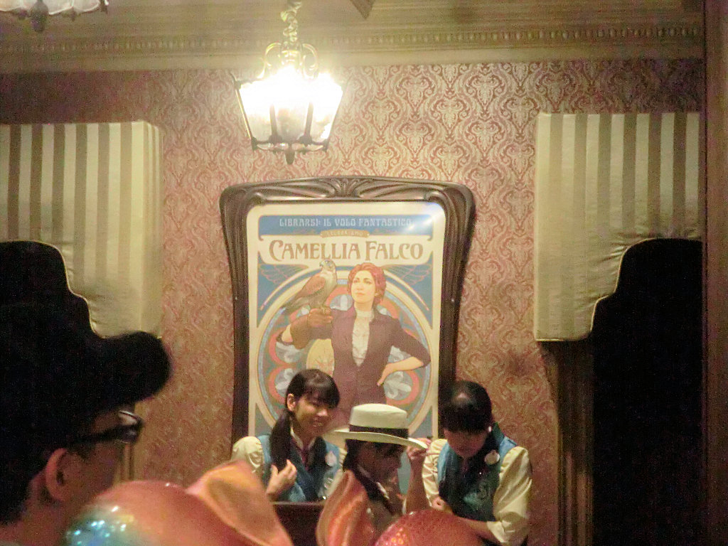 新アトラクション「ファンタスティック・フライト」は中央の女性「カメリア・ファルコ(Camellia Falco)」生誕100周年特別展示ギャラリーという設定になっている。
