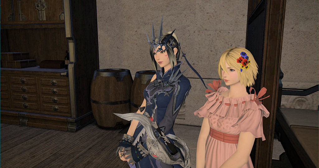 赤魔道士のジョブクエストが進み、NPCの少女の衣装もかわった(右)。