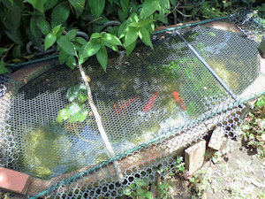 先の金曜日に隣の姉の家の庭でツタの選定をした際に編め度に穴を開けてしまったので、それの修理。ついでに他にもないかどうか確認して、合計4枚の補修をすることにした。張り替え用の網はあったのだがゴムがなかったので、買いに行くことになったが、ついでに奥さんが以前から行っていた押入れ用の引き出しも買うことにしたので、午前中、車で出かけた。戻ってきてすぐぬ張り替え作業・。その際にカッターが滑って、問題ない網にも穴を開けてしまったので、網が足りなくなり、今度は自転車で買いに行った。やれやれ。