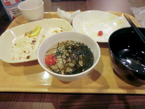 お茶漬け用の刻みのりとか、あられ、わさびなどがあったのでおかわりした。