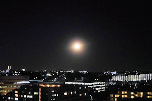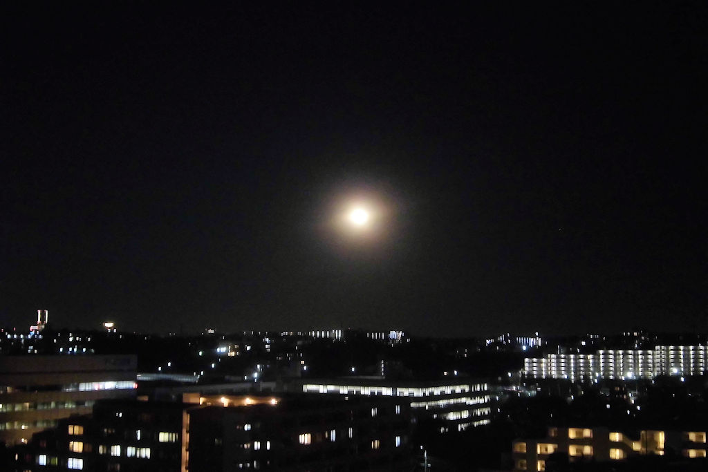 満月は過ぎているのだが、地面近くで月が大きくとても綺麗に見えたので。