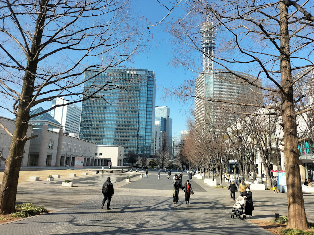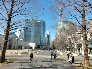 快晴だった。この道というか広場の右側がシネコンのあるビル。