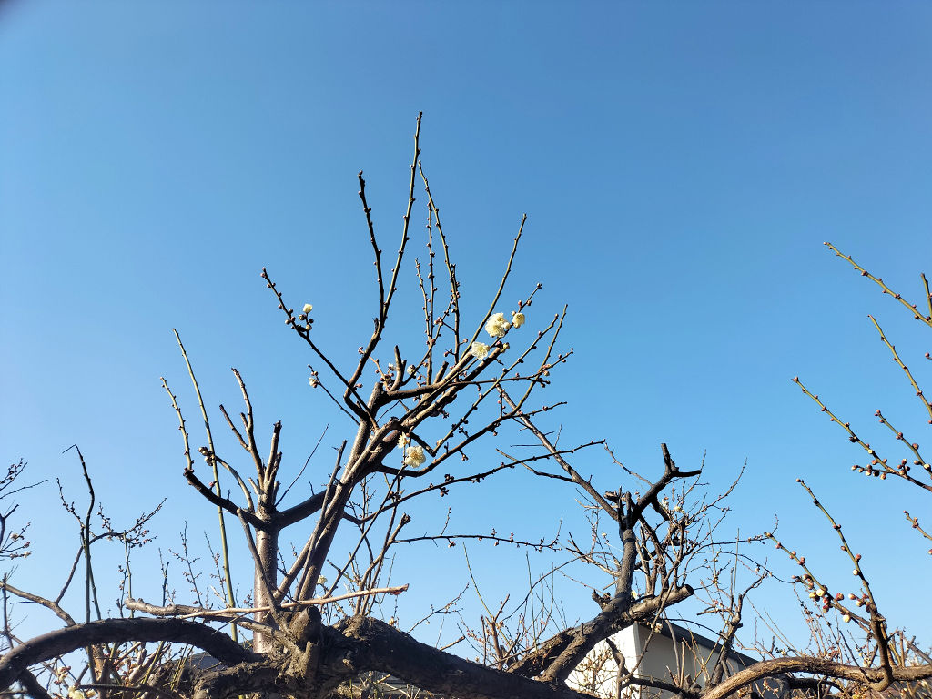 図書館のわきにある梅の木立でもほころび始めていた。