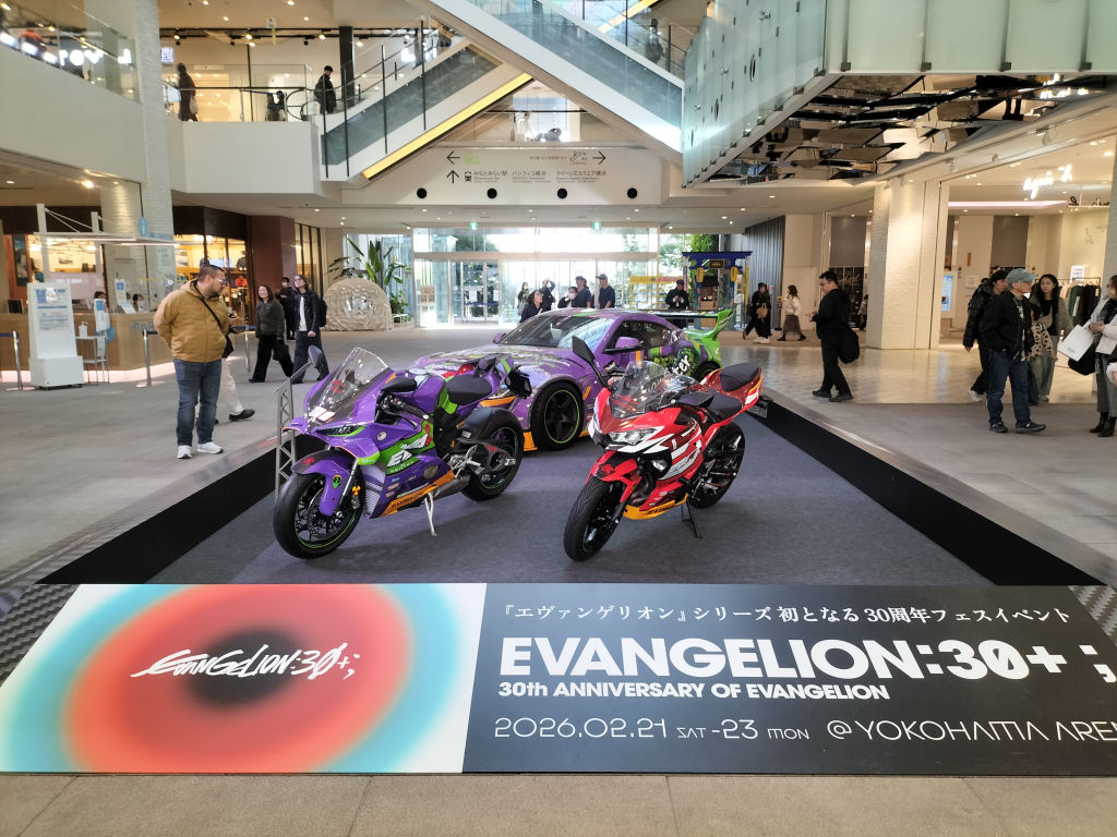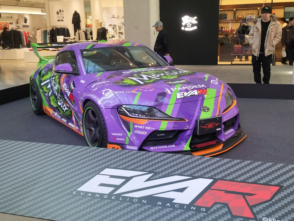 そのシネコンのあるビルではエヴァ30周年とコラボでバイク屋スポーツカーが飾ってあったので写真を撮った。